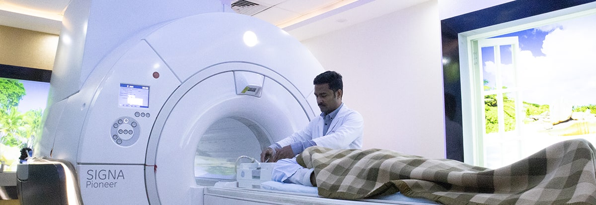 MRI is a type of imaging technology that uses a strong magnetic field and radio waves to create detailed pictures of the inside of the body. The GE SIGNA Pioneer is a 3 Tesla MRI system with a 97-channel system. It offers sharper scans and a comfortable experience for patients. The SIGNA™ Works applications portfolio includes NeuroWorks, OrthoWorks, BodyWorks, OncoWorks, CVWorks, and PaedWorks, covering a wide variety of contrasts, 2D and 3D volumetric data, and motion correction capabilities.